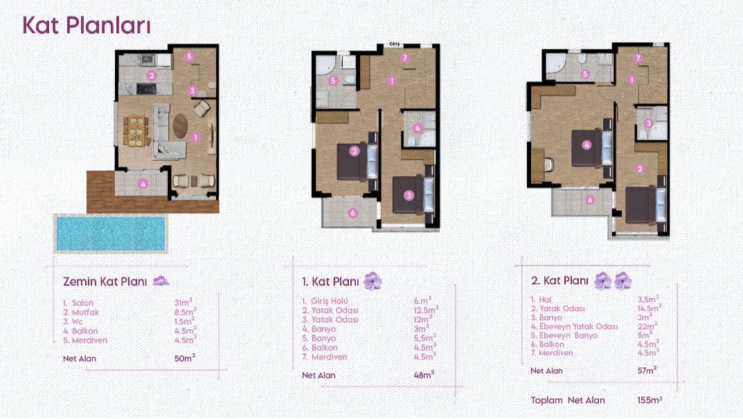 - Villaya ait havuz ve otopark